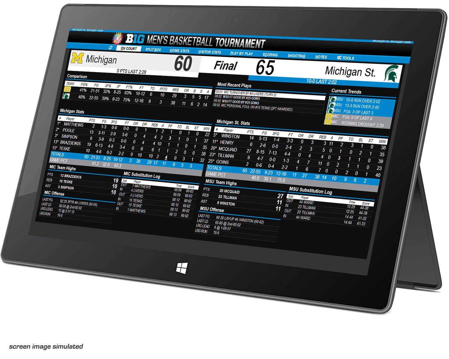 StatBroadcast offers stat monitor hardware available to schools on an academic-year lease or to events on a short-term rental. StatMonitrs can be used to display real-time statistics for your broadcasters and staff throughout your venue, using either wireless or wired internet.